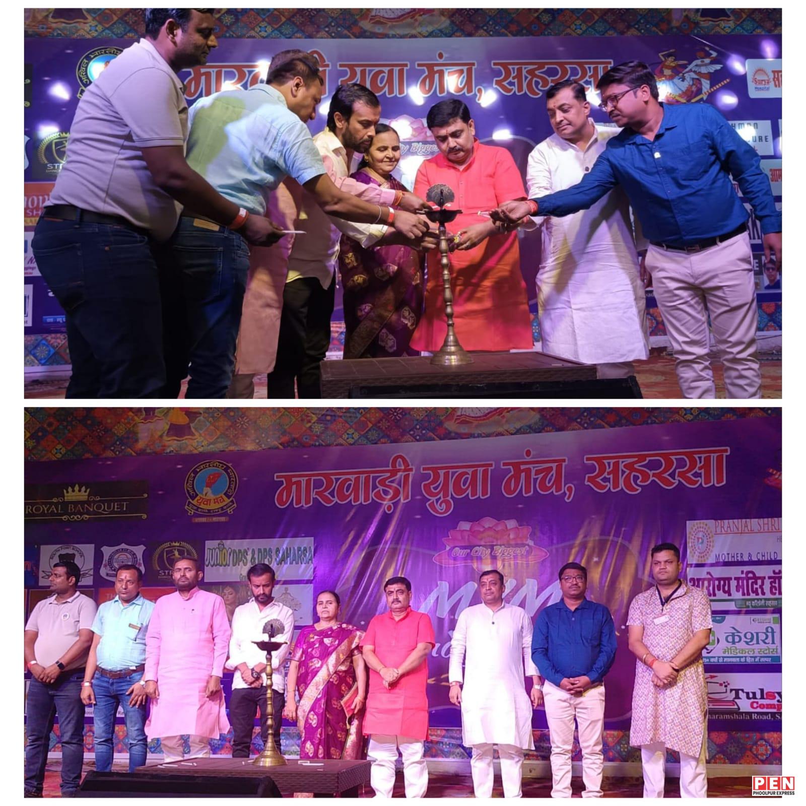 बिहार : सहरसा जिलें के डीबी रोड स्थित रेनबो रिसॉर्ट में पहली बार भक्तिमय माहौल में मारवाड़ी युवा मंच द्वारा मंगलवार को भव्य डांडिया उत्सव का आयोजन किया गया। उत्सव का उद्घाटन मुख्य अतिथि विधायक डॉ आलोक रंजन, पूर्व विधायक किशोर कुमार, महापौर बैंन प्रिया, उपमहापौर उमर हयात गुड्डू, मारवाड़ी युवा मंच प्रांतीय अध्यक्ष प्रदीप सिंधी, राष्ट्रीय सहायक मंत्री विकास खंडेलिया, प्रांतीय उपाध्यक्ष मोहित अग्रवाल, प्रांतीय महामंत्री उज्जवल तुलसीयान सहित अन्य गण्यमान्य ने किया। कार्यक्रम में मुख्य आकर्षण का केंद्र कोलकाता से आए डीजे अमन अपनी जादुई आवाज से श्रोताओं को मंत्रमुग्ध किया।कोलकाता से एंकर प्रियंका दास एवं नृत्य की प्रस्तुति के लिए समीर डांस ग्रुप सिलीगुड़ी ने अपनी भव्य प्रस्तुति दी।