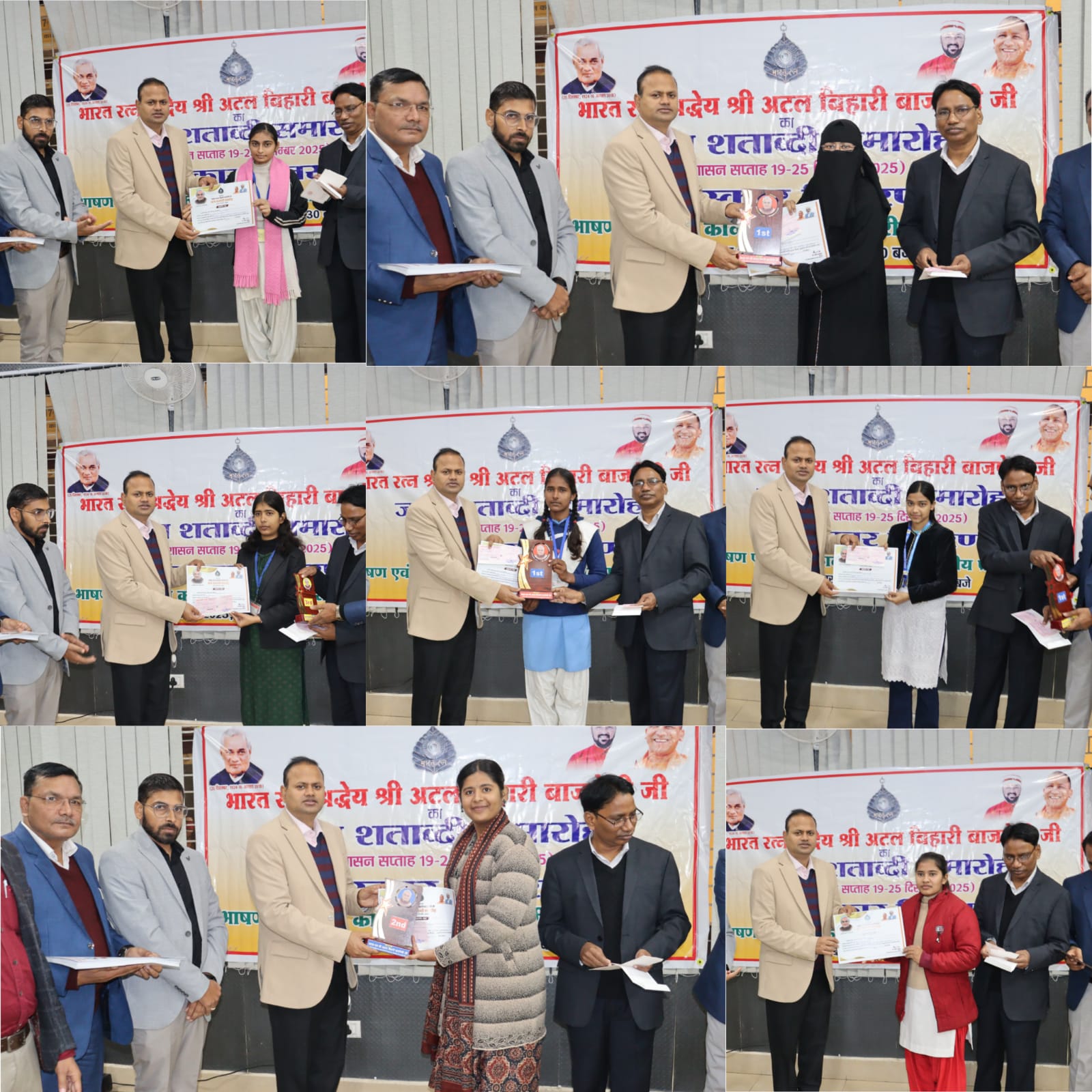 जन्म शताब्दी वर्ष के उपलक्ष्य में आयोजित निबंध, भाषण और काव्य पाठ प्रतियोगिताओं के विजेताओं को प्रशस्ति पत्र, पुरस्कार राशि और शील्ड देकर सम्मानित किया गया: