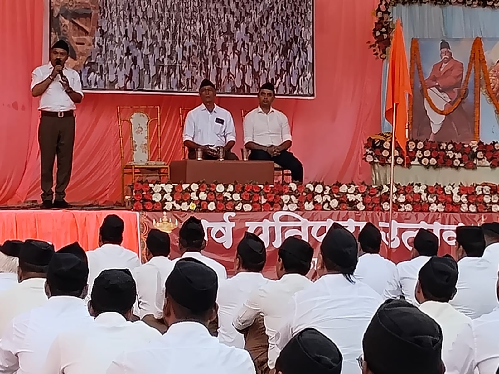 मुख्य अतिथि दीनानाथ जी ने अपने बौद्धिक संबोधन में कहा कि “आज का दिन सृष्टि रचना और हमारे संस्थापक का जन्मोत्सव है। भारत सदैव से वैभव संपन्न रहा है, लेकिन छुआछूत और आपसी भेदभाव के कारण हमने गुलामी का दंश झेला। अब समय आ गया है कि हम एकजुट होकर राष्ट्र को पुनः वैभवशाली बनाएं।” उन्होंने जोर देते हुए कहा कि यदि गांव-गांव में संघ की शाखाएं लगेंगी, तो आतंकवाद जैसी राष्ट्र विरोधी ताकतें कभी सिर नहीं उठा सकेंगी। हमारा स्वयंसेवक हर गांव की रक्षा करने में सक्षम होगा।